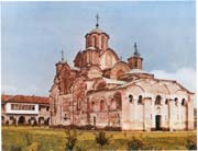 除了圣索菲亚教堂,拜占庭没有重大的建筑活动。教学的规模都很小,穹顶直径最大的也不超过6米。不过,这些教堂的外形有改进,穹顶逐渐饱满起来,举起在鼓座之上,统率整体而成为中心,真正形成了垂直轴线,完成了集中式的构图,这体形远比早期的舒展、匀称。 在俄罗斯、罗马尼亚、保加利亚和塞尔维亚等正教国家,都流行这种教堂。