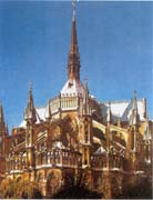 1211-1290年建,法兰西国王的加冕教堂,主教堂内设有主教座,每个教区只有一所。该教堂以形体匀称、装饰纤巧著称。教堂前后建了百余年,由于墩柱形式与装饰主题一致,格调统一。
