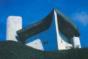 这个教堂的设计中,勒.柯布西耶把重点放在建筑造型上和建筑形体给人的感受上。他摒弃了传统教堂的模式和现代建筑的一般手法,把它当作一件混凝土雕塑作品加以塑造。教堂造型奇异,平面不规则;墙体几乎全是弯曲的,有的还倾斜;塔楼式的祁祷室的外形象座粮仓;沉重的屋顶向上翻卷着,它与墙体之间留有一条40厘米高的带形空隙;粗糙的白色墙面上开着大大小小的方形或矩形的窗洞,上面嵌着彩色玻璃;入口在卷曲墙面与塔楼的交接的夹缝处;室内主要空间也不规则,墙面呈弧线形,光线透过屋顶与墙面之间的缝隙和镶着彩色玻璃的大大小小的窗洞投射下来,使室内产生了一种特殊的气氛。