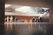 ¡¡¡¡ Õ¹ÀÀ¹ÝºÍÑо¿ÖÐÐĵÄÈë¿Ú¶¼°²ÅÅÔÚÎ÷ÃæÒ»¸ö³¤·½Ðΰ¼¿òÖС£Õ¹ÀÀ¹ÝÈë¿Ú¿íÀ«ÐÑÄ¿£¬ËüµÄÖÐÖáÏßÔÚÎ÷¹ÝµÄ¶«Î÷ÖáÏßµÄÑÓ³¤ÏßÉÏ£¬¼ÓÇ¿ÁËÁ½ÕßµÄÁªÏµ¡£Ñо¿ÖÐÐĵÄÈë¿ÚÆ«´¦Ò»Ó磬²»ÒýÈËעĿ¡£»®·ÖÕâÁ½¸öÈë¿ÚµÄÊÇÒ»¸öÀâ±ß³¯ÍâµÄÈýÀâÖùÌ壬dzdzµÄÀâÏß,ÇåÎúµÄÒõÓ°,ʹÁ½¸öÈë¿Ú¼È·ÖÓֺϣ¬Õû¸öÁ¢Ãæ¼È¶Ô³ÆÓÖ²»ÍêÈ«¶Ô³Æ¡£Õ¹ÀÀ¹ÝÈë¿Ú±±²àÓдóÐÍÍ­µñ£¬ÎÞÂÛ¾ÍÆäλÖá¢Á¢ÒâºÍÐÎÏóÀ´Ëµ£¬¶¼Ó뽨Öþ½ôÃܽáºÏ£¬ÏàµÃÒæÕá£