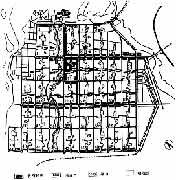 由城市干道网划分成的矩形街区,每块面积约为100公顷(800×1200米),按邻里单位的概念进行规划,居住人口各为 5000~20000人。邻里单位内的商业布局模仿东方古老的街道集市,横贯邻里单位。邻里单位中间与绿带相结合,设置纵向道路,绿带中布置小学、幼儿园和各种活动场地。