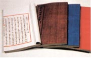 包背装大约出现于南宋中期,又称裹背装、裹后背。是在蝴蝶装基础上发展而来的装订形式。它与蝴蝶装的主要区别是对折书页时字面朝外,背面相对,书页呈双页状。早期的包背装,其包背纸与书页的包裹、粘接方法与蝴蝶装相似,其区别仅在于与包背纸粘接的是订口,而不是中缝;后来的包背装则以纸捻穿订代替了先期的粘接,在订口一侧穿以纸捻,订成书册,然后再包粘包背纸。因其包背纸(封面)包背而不穿纸捻,故称为“包背装”。 |