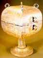 嵌红铜龙纹方豆 越王勾践剑 错金豆 立人形器座