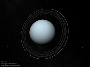 天王星有一个暗淡的行星环系统,环的总宽度约为7000km,环间间隙很大,环本身很窄。光环由石头、尘埃颗粒和冰块组成的。目前已知天王星环有13个圆环,其中最明亮的是ε环。天王星环被认为是相当年轻的,因为圆环周围的空隙和不透明部份的区别,暗示她们不是与天王星同时形成的,环中的物质可能来自被高速撞击或潮汐力粉碎的卫星。