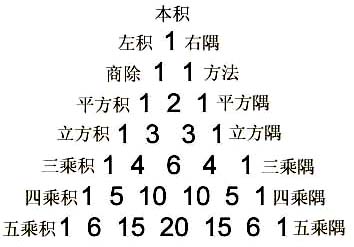 ÔÚ¼ÖÏÜÖ®ºó£¬ÎÒ¹úÊýѧ¼ÒÓÖ½øÒ»²½Ì½Ë÷ÁËϵÊýÖÐÓиºÕûÊýµÄ·½³Ì½â·¨£¬×îÖÕÓÉÄÏËÎÇØ¾ÅÉØ·¢Ã÷µÄ¡°Õý¸º¿ª·½·¨¡±³¹µ×½â¾öÁËÕâ¸öÎÊÌ⣬³ýÁËÑî»ÔµÄÊéÓÐÕâ¸ö¼ÖÏÜÈý½ÇÐΣ¬ÁíÍâÒ»±¾Ôª³¯ÖìÊÀ½Ü1303ÄêдµÄ¡¶ËÄÔªÓñ¼ø¡·£¬ÊéÖÐÒ²ÓÐÕâ¸ö¼ÖÏÜÈý½ÇµÄͼ£¬²¢ÇÒ¼ÆËãµ½Á˶þÏîʽµÄ°Ë´Î·½¡£