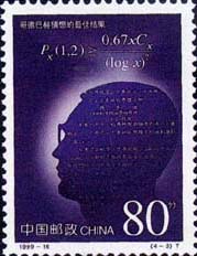 为纪念陈景润在数学科学研究上所做出的杰出贡献,我国专门设计并发行了一张陈景润的邮票。