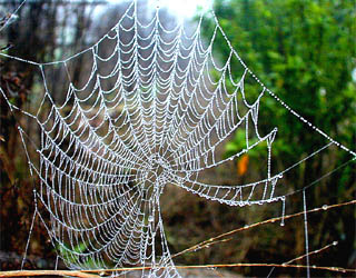 µ±Ëü°²Ö÷øµÄʱºò£¬ÎÒÃÇÖ»¼ûËüÏò¸÷¸ö·½ÏòÂÒÌø£¬ËƺõºÁÎÞ¹æÔò£¬µ«ÊÇÕâÖÖÎÞ¹æÔòµÄ¹¤×÷µÄ½á¹ûÊÇÔì³ÉÒ»¸ö¹æÔò¶øÃÀÀöµÄÍø£¬Ïñ½ÌÌÃÖеÄõ¹å´°Ò»°ã¡£¼´Ê¹ËûÓÃÁËÔ²¹æ¡¢³ß×ÓÖ®ÀàµÄ¹¤¾ß¡£Ã»ÓÐÒ»¸öÉè¼Æ¼ÒÄÜ»³öÒ»¸ö±ÈÕâ¸ü¹æ·¶µÄÍøÀ´¡£