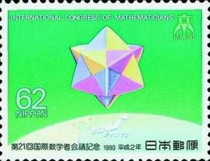 1990年在欧洲和北美洲以外举办的第一次国际数学家大会于在京都召开。纪念邮票的图案是一个日本折纸构成的多面体。 |