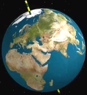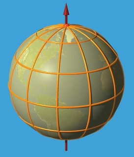 Óë±±°ëÇò¡£Í¨¹ýתÖáµÄÆ½ÃæÓëÇòÃæÏཻ֮´óÔ²Ïß½«Í¨¹ýÄϼ«Óë±±¼«¡£ÕâЩ´óÔ²Ïß¶¼¸÷ÓÉÁ½¸öÁ¬½ÓÁ½¼«µÄ°ëÔ²ÖÜËù×é³É£»ÕâЩ°ëÔ²ÖܳÆÎª¾Ïß¡£³ýÁ˼«µãÖ®Í⣬µØÇòÉϵÄÿһµã¶¼Ö»ÔÚÒ»Ìõ¾ÏßÉÏ¡£