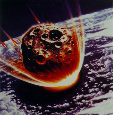ÆäÖÐСÐÐÐÇÅöײ˵ÈÏΪ£º´óÔ¼ÔÚ6500ÍòÄêǰ£¬Ò»¿ÅÖ±¾¶ÎªÇ§Ã××óÓÒµÄСÐÐÐÇÓëµØÇòÏàײ£¬ÃÍÁÒµÄÅöײ¾íÆðÁË´óÁ¿µÄ³¾°££¬Ê¹µØÇò´óÆøÖгäÂúÁ˻ҳ¾²¢¾Û¼¯³É³¾°£ÔÆ£¬ºñºñµÄ³¾°£ÔÆÁýÕÖÁËÕû¸öµØÇòÉϿգ¬µ²×¡ÁËÑô¹â£¬Ê¹µØÇò³ÉΪ¡°°µÎÞÌìÈÕ¡±µÄÊÀ½ç£¬ÕâÖÖÇé¿ö³ÖÐøÁ˼¸Ê®ÄꡣȱÉÙÁËÑô¹â£¬Ö²ÎïÀµÒÔÉú´æµÄ¹âºÏ×÷Óñ»ÆÆ»µÁË£¬´óÅúµÄÖ²ÎïÏà¼Ì¿Ýή¶øËÀ£¬ÉíÇûÅÓ´óµÄʳ²Ý¿ÖÁúÿÌìÒªÏûºÄ¼¸°Ù¼¸¸Éǧ¿ËÖ²ÎËüÃǸù±¾ÎÞ·¨ÊÊÓ¦ÕâÖÖÍ»·¢Ê¼þÒýÆðµÄÉú»î»·¾³µÄ±äÒ죬ֻÓÐÔÚ¼¢¶öµÄÕÛĥϾøÍûµØµ¹Ï£»ÒÔʳ²Ý¿ÖÁúΪʳԴµÄʳÈâ¿ÖÁúÒ²Ïà¼ÌËÀÈ¥¡£1991ÄêÃÀ¹ú¿ÆÑ§¼ÒÓ÷ÅÉäÐÔÍ¬Î»ËØ·½·¨£¬²âµÃÄ«Î÷¸çÍåÓÈ¿¨Ì¹°ëµºµÄ´óÔÉʯ¿Ó£¨Ö±¾¶Ô¼180ǧÃ×£©µÄÄêÁäԼΪ6505.18ÍòÄê¡£´Ó·¢ÏֵĵرíÔÉʯ¿ÓÀ´¿´£¬Ã¿°ÙÍòÄêÓпÉÄÜ·¢ÉúÈý´ÎÖ±¾¶Îª500Ã×µÄСÐÐÐÇײ»÷µØÇòµÄʼþ¡£¸ü´óµÄСÐÐÐÇײ»÷µØÇòµÄ¸ÅÂʾ͸üСÁË¡£