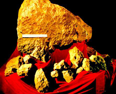 陨落的巨石穿透冻土层,砸出一个深6.5米、直径2米多的坑。这块陨石重1770千克,是至今世界上最大的石陨石,连同收集到的其它陨石,总重量达2吨以上 |