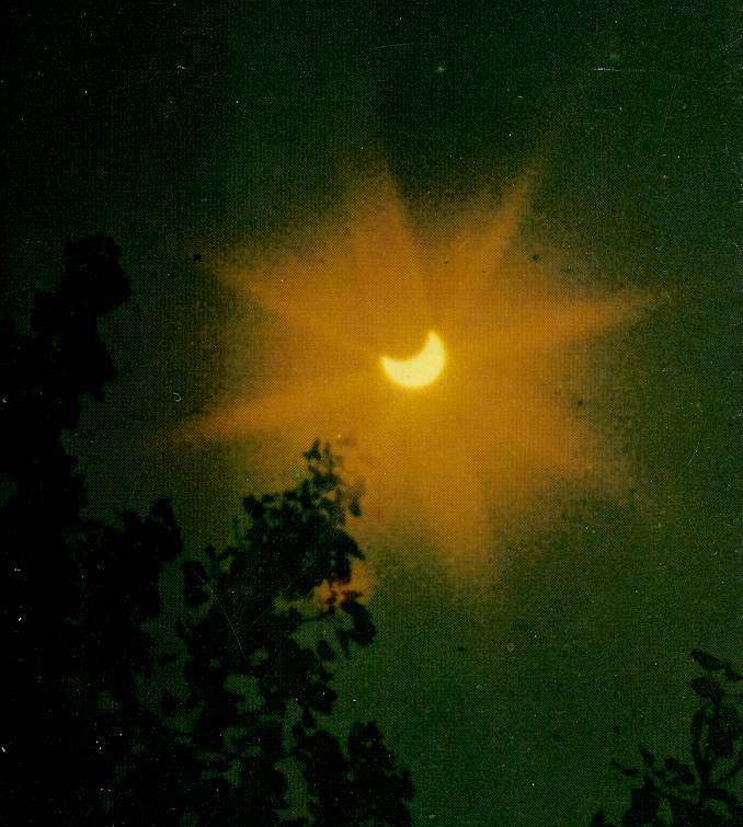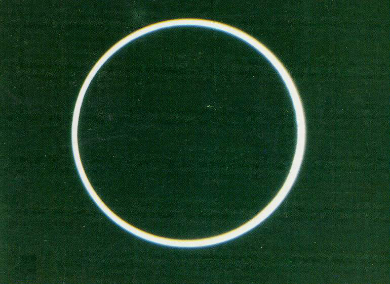 我们知道,月球是围绕地球转动的,地球又带着月球一起绕着太阳公转,当月球运行到太阳和地球之间,三者差不多成一直线时,月影挡住了太阳,于是就发生了日食。月影有本影、伪本影(本影的延长部分)和半影之分。在月亮本影扫过的地方,那里太阳光全部被遮住,所看到的是日全食;在半影扫过的地方,月球仅遮住日面的一部分,这时看到的是日偏食。有时,月球本影达不到地面,它延伸出的伪本影扫到地面,此时太阳中央的绝大部分被遮住,在周围留有一圈明亮的光环,这就是日环食。天文学家称环食和全食为中心食。中心食的过程中必然会发生日偏食。