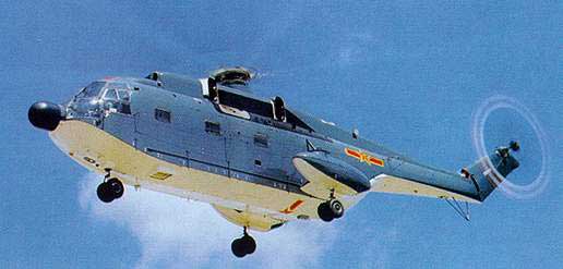 直-8是中国直升机设计研究所与昌河飞机工业公司共同研制生产的多用途中型直升机。该机于1976年开始研制,首架原型机于1985年12月首飞,首架生产型直-8于1989年交付中国海军航空兵使用。直-8的总体布局为单旋翼带尾桨布局,旋翼为6片矩形胶接全金属桨叶,尾桨为5片桨叶,船形机身,带水密舱,两侧有固定水陆两用短翼浮筒,不可收放前三点式起落架,可以进行水上起降。安装了3台涡轴6型发动机,单台最大起飞功率1128千瓦。直-8直升机可军民两用。机舱可载运27名全副武装的士兵飞行700公里进行机降,最多可载运39人,和载运一辆BJ-22型吉普及有关人员,或装载3000公斤货物飞行500公里,或外挂运送5000公斤货物到50公里外的地方,然后返回原地。用于救护,舱内可载15名伤病员(各带一副担架)和一名医护人员。执行搜索救援时,机上可装备一台液压救生绞车和两只救生艇,在陆地和海上执行救援任务。直-8不仅可以陆基使用,而且可以舰载使用。在反潜、反舰作战中,机上可装备吊放声纳、搜索雷达,并发射鱼雷或导弹。执行扫雷任务时,可拖曳一个扫雷具,在距基地92公里的水域以46公里的时速扫雷两小时;也可以携带8枚250公斤的水雷进行布雷。另外直-8还可用于人员运输、地质勘探、航空测绘、建筑施工、森林防火、边防巡逻、通讯联络指挥等。直-8曾顺利执行过抢险救灾和科研试飞等任务,1993年首飞西沙成功。