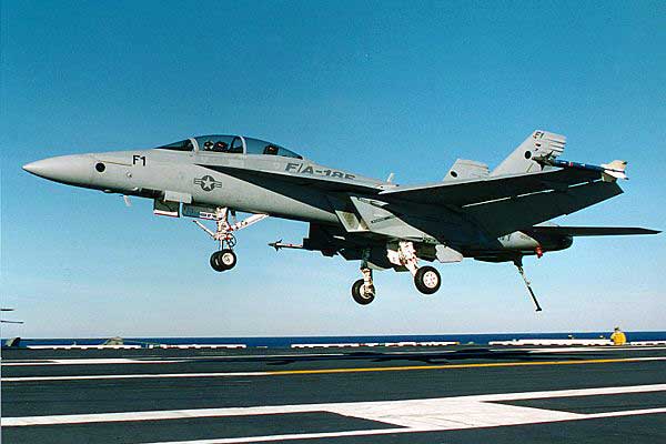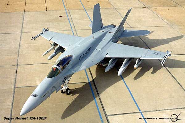F/A—18E/F是美国麦克唐纳·道格拉斯公司(现并入波音飞机公司)在F/A—18C/D飞机基础上发展舰载战斗/ 攻击机,E型为单座型,F为双座型。1991年美国国防部取消了隐身舰载攻击机A—12计划,为满足海军替换60年代A—6的迫切需要,以及填补下一代攻击机A/F—X服役之前的空白,1992年美海军选中了麦克唐纳?道格拉斯公司的F/A—18E/F作为过渡机种。与F/A—18C/D相比,F/A—18E/F加长了机身和翼展,增加了机翼和水平尾翼的面积,增加了载油量和武器,加大了航程。该机的动力装置更新为2台通用电气公司的F414—GE—400涡扇发动机,单台加力推力可达97.9干牛。该机的机载电子设备90%以上与F/A—18C/D兼容,装备了休斯公司的AN/APG—73多功能数字式空对空和空对地雷达,升级了座舱显示设备等。该机所用材料与C/D型基本相同,但采用很多隐身技术。该机原型机于1995年11月29日首飞,1998年开始生产型的总装,2001年投入使用。