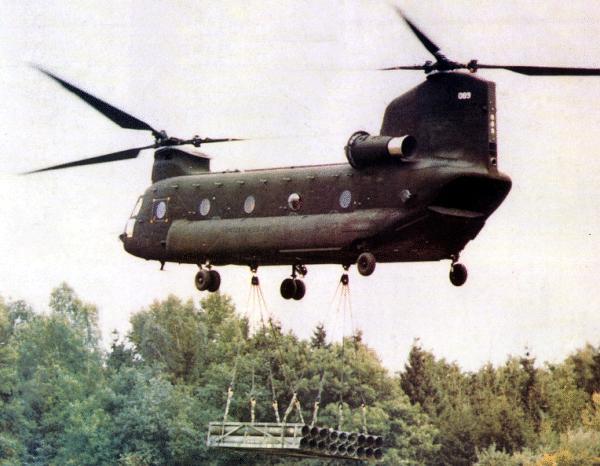 CH-47“支奴干”纵列式双旋翼直升机是美国波音公司为美国陆军研制的全天候中型运输直升机。该机于1956年开始研制,公司编号为波音114,第一架原型机于1961年首飞,1962年8月开始交付美国陆军使用。