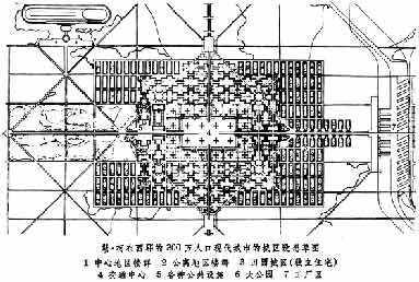 勒·柯布西耶的 300万人口现代城市的城区设想草图
