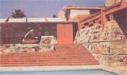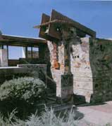 这是一组不拘形式的、充满野趣的建筑群。它同当地的自然景物倒很匹配,给人的印象是建筑物本身好象沙漠里的植物,也是从那块土地中长出来的。