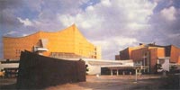 柏林爱乐音乐厅的前厅安置在观众厅的正下面,由于观众厅的底面如同一个大锅底,其下的前厅的空间高矮不一,其中还布置着许多柱子、杰梯和进口,因而这个音乐厅的前厅的空间形状极其复杂,路线非常曲折。初次来此的人会产生扑朔迷离、摸不清门路而丰富诱人的印象。及至进入观众厅内,看到的又是如同山口袋中葡萄园似的景象。听众席化整为零,分为一小块一小块的“哇田”似的小区,它们用矮墙分开,高低错落,方向不一,但都朝向位于大厅中间的演奏区。由于化整为零,一般大观众厅中常有的诚大的大尺度被化解了,确实呈现出亲切]随和、轻松、细开展巧、潇洒的气氛。