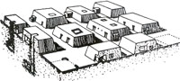 上埃及的以卵石为墙基,用土坏砌墙,密排圆木成屋顶,再铺上一层泥土,外形象一座有收分的长方形土台。