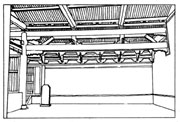 屋内额除一般做联系构件外,也有用长2间或3间的圆木的。它架在内柱上,下面省去一至两根内柱,由它来承托被省去的柱上的梁架。1137年所建山西五台县佛光寺文殊殿面阔7间,殿内用6道厅堂型“八架椽屋前后乳伏用四柱”的梁架,原应有12根内柱,但在殿内用了3根长3间的内额和两根长两间的内额,省去8根内柱。1309年所建山西洪洞广胜寺下寺大殿内用了4根长3间的内额,省去6根内柱。这种做法,减少了内柱数量,加大内柱柱距,可以满足室内布置上的特殊要求。