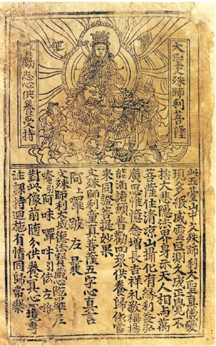 《文殊师利菩萨像》(五代印品)图片