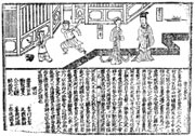 宋代书籍的插图和插图印刷 宋代是雕版印刷术发展的鼎盛时期,书籍的插图艺术,在继承前代传统的基础上,向前推进了一大步。宋代以前的印刷品插图,多见于佛教的经卷和单页的佛像。而宋代印刷品中的插图不仅在佛教,而且在历史故事、小说平话、技术著作中都配有插图。 《开宝藏》中的插图以山水为主,人物处于次要地位。 在宋代的图版印刷中,出现了一种供招贴的图画,这可能是中国年画的前身。现存的一幅刻印于北宋雍熙元年(公元984年)宗教张贴画,就属于这一类。 |