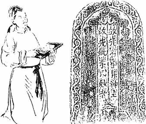 毕升画像和英山出土的毕升墓碑拓片图片