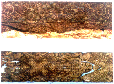 ¡¡¡¡ÏÂͼ¼ûÓÚÎè·ï·ÉÁúÎÆÐåÍÁ»Æ¾îÃæÃàÅÛÁìÖв¿¡£ËùÓþ­Î³ÏßÓëǰÕßÏàͬ¡£ÔÚÏàÁÚµÄÁ½¸ö»¨ÎÆÑ­»·ÖУ¬ÁúµÄÑÕÉ«½»ÌæÊ¹ÓÃîÜÀ¼ºÍºìרÁ½É«£¬Êµ¼ÊÉÏÿһ¸ö»¨ÎÆÑ­»·ÖÐֻʹÓÃÁ½ÖÖÑÕÉ«µÄ»¨Î³¡£»¨ÎÆË³¾­Ïò²¼Öã¬×óÓҶԳơ£»¨ÎÆÍ¼°¸µÄÉϲ¿ÊÇÁ¬Î²¶ÔÁú£¬ÕÅÑÀÎèצ¡£ÁúµÄÏÂÃæ¸÷ÓÐÒ»Ö»¶À½ÇÊÞ¡£Á½Áú¼äÓÐÒ»¸ß̨£¬ÉÏÓÐÒ»×÷Ë«ÊÖ²æÑüµÄÈËÐΡ£ÁúµÄϲ¿ÊǶԷ·ïµÄÒ»²àÓÐÊÞ¡£