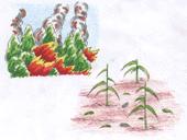 在此小镇有一个水泥厂, 一个复合肥料厂大量排放烟尘和氨,
