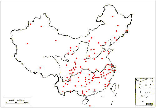 到目前为止,中国大陆已有百余个城市进行了酸雨监测,形成监测网,遍及全国各地,从而较为准确地划分出我国酸雨范围并把握住变化趋势。