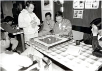 为活跃考察队生活,考察船要组织KYAROMA比赛。KYAROMA,是用手指玩的“克朗球”,但与克朗球规则不同,它不能直接将球子打入洞内,必须在球盘四周经过一次或一次以上的反弹后,再击球子入洞方有效。有趣的是,在公布队员名单时,每人都须有一个“马名”,我的“马名”是喜马拉雅,这大概是与我在船上的学术报告有关吧!日本朋友说的“马名”与中国人的“字号”相似。