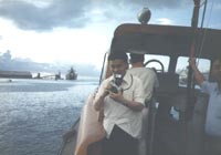 10时许,考察船停泊在新加坡东北侧与马来西亚交界处的一个名叫三巴旺的军港内,据说这儿是专停泊外国军舰的。<白濑号>是日本的"海上自卫队"船,属于军舰。这个港离市区较远,由日本海员俱乐部派班车接送队员和船员们去市里观光,定时发车。