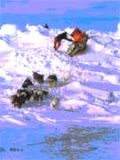 ¡¡¡¡Ò»°ã·Ö¿ªµÄ¼ÒÍ¥³ÉÔ±×éÖÐ×ÜÓÐһλÀÏÈË£¬¼ÓÉÏËûÁ½¸ö³ÉÄêµÄ¶ù×ÓºÍÒ»¸öÅ®¶ù¼°ÆäÅäż¡¢×ÓÅ®£¬´óÔ¼ÓÐ12¡«13ÈË¡£ÔÚÐнøÖУ¬Ò»¸öÄÐ×ӽŴ©Ñ©Ð¬×ß×îÇ°Ãæ£¬ÔÚÓÖÉîÓÖÈíµÄÑ©µØÖÐ̤³öÒ»ÌõµÀ£¬3ֻѩÇÁ²¢ÅŸúÔÚËûºóÃæ£¬Ã¿Ö»ÇÁÔØÖØ´óÔ¼225¹«½ï£¬ÓÉ2¡«3Ö»¹·À×Å£¬¸¾Å®ºÍº¢×ÓÒ²°ï×ÅÀ¡£Ó¤¶ù±»°üÔÚĸÇ×»ò½ã½ãµÄ·çÑ©´óÒÂÀïÓÉËýÃÇÌùÉí±³×Å£¬¸Õѧ²½µÄº¢×Ó±»·ÅÔÚÑ©ÇÁÉϵÄÒÂÎïÉÏ¡£ÀÏÈË×øÔÚÑ©ÇÁÉÏ»òͽ²½ÐÐ×ߣ¬ÕâÈ¡¾öÓÚËû£¨Ëý£©µÄÉíÌå×´¿öºÍÂÃ;Ìõ¼þ¡£ÁíÓÐÁ½¸öÄÐ×ÓºÍÒ»¸ö¸¾Å®»ò´óÒ»µãµÄÄк¢ÔÚºóÃæÍÆÑ©ÇÁ²¢ÕÆÎÕ·½Ïò¡£Ò»¼ÒÀÏСÐнøµÄËٶȺÜÂý£¬ÔÚûÓзµÄÇé¿öÏ£¬1Сʱ²ÅÄÜ×ß1¡«2¹«ÀÖÐ;ҪͣÏÂÒ»Á½´Î£¬³ÔһЩÉúÓãÆ¬¡¢¶³ÓãºÍº£±ªÓÍ£¬ÒÔ²¹³äÄÜÁ¿¡£Ã¿µ½ÏÂÎ磬ȫ¼ÒÈËÍ£ÏÂÀ´´î½¨2¡«3¸öÔ²¶¥ÎÝ£¬ÏÈÓÃÆäËû²ÄÁÏ´î³É¼Ü×Ó£¬È»ºóÆÌÉÏѱ¹Ƥ¡£×¡´¦´îºÃºó£¬ÄÐÈ˺ʹóÄк¢¾Íµ½¸½½üѰÕÒѱ¹µÄ×Ù¼££¬¸¾Å®ºÍÅ®º¢ÕûÀíÎÝ×Ó¡£ËûÃÇÏÈÔÚ¯±ßÆÌÉÏÒ»²ãÁøÊ÷Ö¦£¬ÔÙÆÌÉÏѱ¹Ƥ£¬È¡³ö˯´üºÍÆäËûÒ·þ£¬µãÁÁÓ͵ơ£È«¼ÒÈËÒªÔÚÕâÀïסһ¸öÍíÉÏ»ò¸ü³¤µÄʱ¼ä¡£