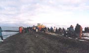 居住在北极海域沿岸的爱斯基摩人都进行捕鲸活动,而在内陆地区,如驯鹿爱斯基摩人并不捕鲸。捕鲸活动对爱斯基摩人来说,要投入大量的人力和物力。每年3月底,村里的捕鲸船全部整装待发,至少2/3的男人要参加捕鲸队,还有一部分妇女为捕鲸队员做饭。该地区的爱斯基摩捕鲸队将集中到鲸群经常出没的地方,选择有利地形,安营扎寨。每艘船一般间距约200米。每个铺鲸队都有自己的狩猎范围,阿拉斯加地区的霍普角和库兹布湾每年夏天都吸引着很多捕鲸队。捕鲸队到达目的地之后,便开始每天24小时的守望。猎人不知疲倦地了望海面,搜寻鲸群的踪迹。