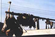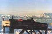 将猎物的肉挂在房顶上,以防狗和北极熊偷吃 |