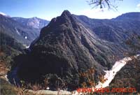 大拐弯峡谷是其最直观醒目的形象--以峡谷围绕着喜马拉雅山东端的最高峰(南峰)作了个奇特的马蹄形大拐弯。高峰与拐弯峡谷神奇的组合,构成世界峡谷河流发育史上的罕见奇观。其实,大拐弯峡谷是由若干小的拐弯一个串套着一个,深的V字形峡谷一个叠套着一个组成。如从大峡谷进口经大渡卡、宜淀、格嘎、直白、龙悲、加拉、白马格雄、西兴拉到扎曲、八玉、甘代,峡谷河道出现一系列直角甚至超过直角的奇特、不协调的拐弯。在甘代以下经加热萨、邦辛到金珠曲汇入口(达国桥)段,在总体呈近南北向的峡谷河段上呈现最令人醒目的、有规则的连续的直角形拐弯,我们形象地称之为“弓”字形峡谷河段。在金珠曲汇入口以下,经墨脱、背崩、地东、希让到邦沟之间,峡谷河段主要呈现拉长了的“S”形。峡谷河段到邦沟又突然由原来的南西方向折变为向南东方向流去,这段峡谷流向的突变从卫星影像图上分析其发育显然受控于以邦沟为顶端的一个巨大北西向倾伏背斜构造轴部的巨大张性断裂带的。 又如,大峡谷在垂直方向上的特点是V形峡谷一个叠套着一个,一个深切于一个,它反映了这里地壳强烈的,而且是一种间歇性的上升。峡谷河流间歇性地下切,才出现V形峡谷一个个的叠套,从而在河谷剖面上出现夷平面的残留、谷肩平台和阶地、洪积扇形地等,使坡面具有平缓转折的成层地形。河谷切入基岩,出现嵌入的曲流、山嘴的连锁交错。如大峡谷进口附近的大渡卡、宜淀、格嘎、直白、龙悲等阶地平台。白马格雄前方的错卡勒边坝的沼泽草甸平台、大拐弯顶端的扎曲-钢郎平台、墨脱上方的仁钦朋平台、背崩对岸的月儿工平台、地东后山梁的平台等,都是2000-3000米之间的复合基座阶地平台,平台上往往有一种粘性的黄土状土堆积,它在峡谷河流发育史上具有重要意义。西兴拉以下到帕隆藏布江汇入口之间,河床深切入基岩呈石槽状,短距离内出现急拐弯的S形嵌入曲流,陡急的河床上出现多处连续的瀑布群,是十分罕见的。