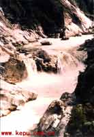 在白马格雄以下河床上,本世纪初的英国人贝利和20年代的沃德(F·K·ward)曾提到的“彩色瀑布”或“虹霞瀑布”,这次考察证实已经消失,遗址只剩下四处跌水残留。