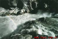 应该指出,现在这段峡谷洪枯水位高差达21米之多,在洪水期和枯水期,瀑布表现出的规模和形态也会有很大的差异。1998年考察和测量到的特征数据,都是11月份枯水期的结果,试想在水位暴涨20余米的洪水期,峡谷河床瀑布又能出现什么样的景观呢?!这也应当是属于峡谷河床瀑布多变化性的特点范围之一。