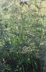 假如你在七、八月间到内蒙古草原旅游,在居民点附近或者人与牲畜经常活动的丘陵坡地、山野路旁,在一大片低矮的草地上,会看到一丛丛碧绿的高达1-2米的植物,这种植物全株披被柔 毛、叶片轮廓五角形,花药椭圆形,呈黄色,如果你对它感到新奇或者不经意间,用手去碰一下的话,你就会立刻感到疼痛难忍,像马蜂螫似的。如果你感到奇怪,以为是被马蜂或者别的动物叮咬,那你就错了。其实,这是一种会螫人的草,叫做麻叶荨麻。