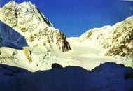我国的西部,高原雄踞,高山耸峙,孕育了许多山岳冰川,是世界上山岳冰川最发达的国家之一。我国海拔四干米以上的高山高原约有二百万平方公里。号称世界屋脊的青藏高原和帕米尔高原盘踞西陲,巍峨的喜马拉雅山、昆仑山、祁连山、天山和阿尔泰山直插云天。世界上14座海拔超过8000米的高峰,其中有7座在我国境内或边界。