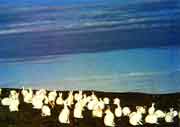 在北极,比旅鼠稍大一点的食草动物则是野兔。但其数量比起旅鼠则少得多。在北极,野兔的数量是非常有限的,甚至还没有狐狸多。这是因为,北极野兔的繁殖能力并不强。受气候和食物限制,它们每年只能产一窝。每窝也只有2~5只,但其成活率比较高,所以数量比较稳定,不像旅鼠那样大起大落,集体去自杀,当然也就没有旅鼠那样高的知名度。