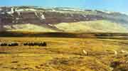 麝牛在分类上是一种介于牛和羊之间的动物,也许将其归于羊科或羚羊科更为合适。从其外表来看,更像我国西藏的牦牛,而且也确实有一股牛脾气。麝牛高约1米半,长约两米到两米半左右,体重可达400多公斤,雌牛略轻,大约只有雄牛的3/4。其重量主要集中于长有肉峰的前半身,前重后轻,显得格外矫健有力,是北极最大的食草动物,分布于加拿大、格陵兰和阿拉斯加北部的冰原上,以苔藓、地衣和植物的根、茎及树皮等为食,行动迟缓,劲头十足,俨然是苔原上的主宰。