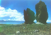 纳木错,又称腾格里海,腾格里湖,意为“天”,这是因为湖水湛蓝明净如无云的蓝天,所以名之。湖周雪峰好像凝固的银涛,倒映于湖中,肃穆、庄严,极自然之致。湖中有5个岛屿,东南面是由石灰岩构成的扎西多半岛,半岛上岩溶地形发育,有石柱、天生桥、溶洞等,景色美丽多姿。