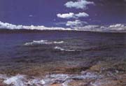 纳木错当然不是“天赐”的。大约在距今200万年前,地壳发生了一次强烈的运动,青藏高原大幅度隆起,岩层受到挤压,有的褶皱隆起,成为高山;有的凹陷下落,成了谷地或山间盆地。纳木错就是在地壳运动陷落的基础上,又加上冰川活动的影响造成的。早期的纳木错湖面非常辽阔,湖面海拔比现在低得多。那时气候相当温暖湿润,湖水盈盈,碧波万顷,就如同一个大海。后来由于地壳不断隆起,纳木错也跟着不断上升,加上在距今1万年以来,高原气候变得干燥,湖水来源减少,湖面就大大缩小了,湖泊则被抬升到现在的高度。现在湖面海拔4718米,是世界上海拔最高、面积超过1000平方公里的大湖。青藏高原的窝尔巴错,湖面海拔虽达5465米,但窝儿巴错面积很小。南美洲的安第斯山虽有著名的高山湖--的的喀喀湖,面积达8330平方公里,但的的喀喀的海拔仅3812米,比纳木错低将近1000米。