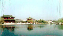 瘦西湖位于江苏省扬州市的西北郊, 原名保障河, 又名长春湖, 是古老河道经人工改造的旅游湖泊。