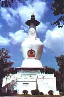 吹台俗称钓鱼台,相传清乾隆南巡时曾在此钓过鱼。透过吹台园洞,五亭桥,白塔映入眼帘。