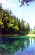 ¡¡¡¡¾ÅÕ¯¹µºþË®Öк¬ÓдóÁ¿µÄ̼Ëá¸ÆÖÊ£¬ºþµ×ºþµÌ¾ùϵÈé°×É«µÄ̼Ëá¸Æ½á¾§£¬À´×ÔѩɽµÄÈÚË®¡¢ÉÁÖÁ÷Ȫ£¬Ê¹ºþË®Òì³£½à¾»£¬ÔÙ¼ÓÉÏÌݺþµÄ²ã²ã¹ýÂË£¬ÆäˮɫÇ峺Èç¾µ£¬À¶±Ì¾§Ó¨¡£ºþÖÐË®Ô壬¹à´Ô·±Éú£¬ºþµ×É«²Ê°ß쵵ijÁ»ýʯÔÚÑô¹âÕÕÉäÏ£¬³ÊÏÖ³öÀ¶¡¢»Æ¡¢³È¡¢Â̵ÈÉ«²Ê£¬Ñ¤Àö¶áÄ¿¡£Õ¿À¶µÄÌì£¬Òø°×µÄ·å£¬´äÂ̵ÄÁÖ£¬Ò»Æëµ¹Ó³ºþÖУ¬ÈçÊ«È绣¬¿°³Æ¡°ÌìϵÚһˮ¡±¡£