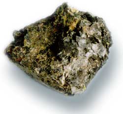 鉴定特征:绿黑色,八边形短柱状晶体,二组解理交角近直角。