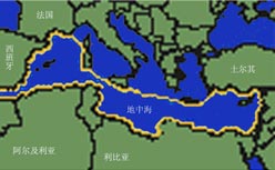让我们打开世界地图,可以看到,在欧、亚、非洲之间有一个海,就是地中海。它是世界上最大的陆间海。东西长约4000公里,南北宽约1800公里,面积约250多万平方公里。地中海西边有21公里宽的直布罗陀海峡,穿过它就到大西洋;东边可以通过苏伊士运河进印度洋,东北部通过达达尼尔海峡、