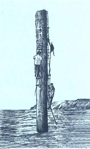 建在浅海的观测桩,上面装有仪器观测海洋现象